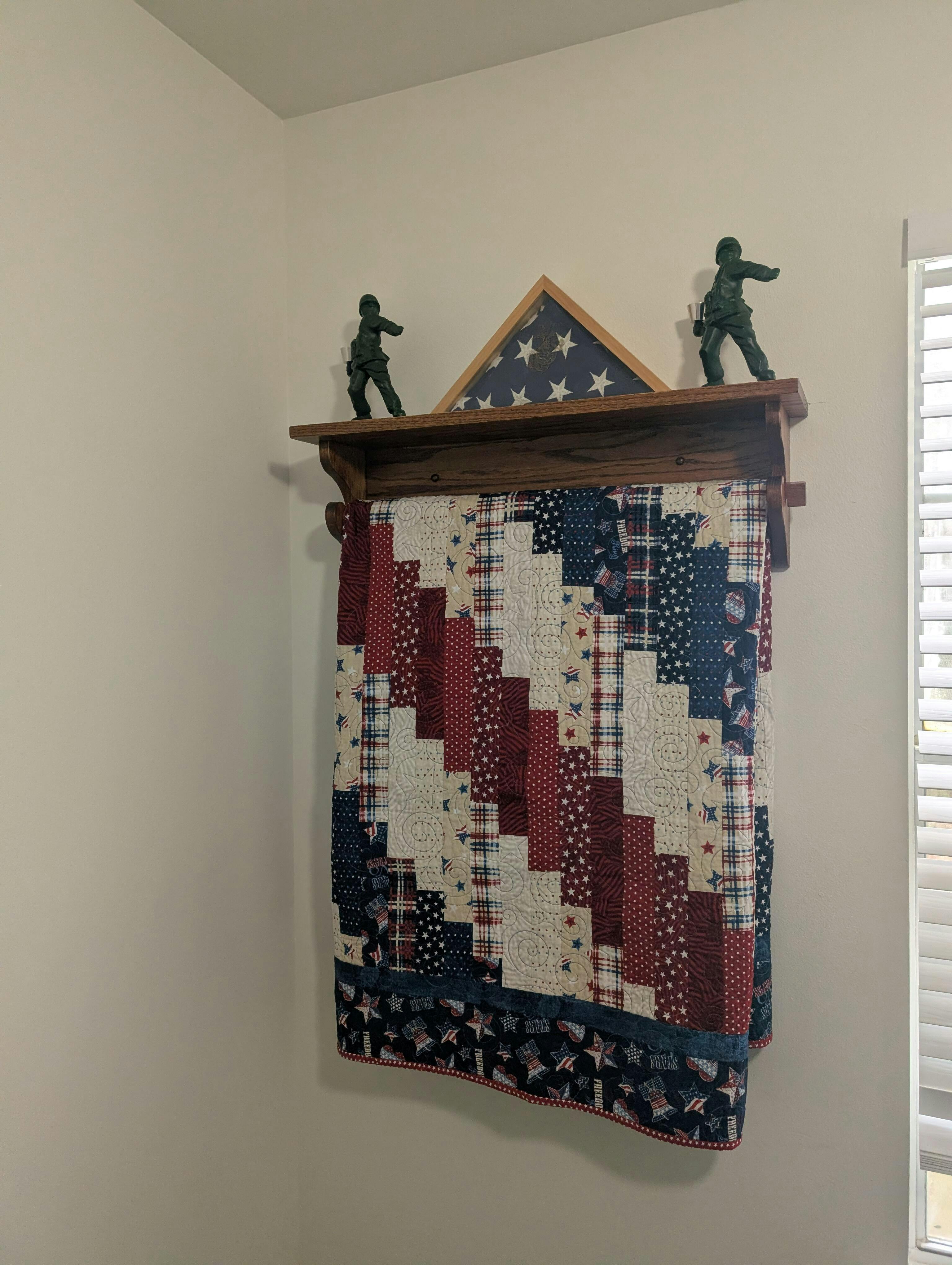 My husband is a veteran and we are using this high quality quilt rack/shelf to display his quilt of valor. It's perfect.