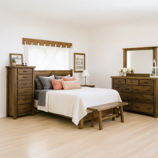 Explore the rustic bedroom furniture sets at Rustic Red Door, carefully curated to create a cohesive and inviting bedroom atmosphere. Each set typically includes a rustic bed frame, complementing nightstands, dressers, and more. Choose from various wood types, finishes, and styles to customize your bedroom's look. Whether you prefer the...